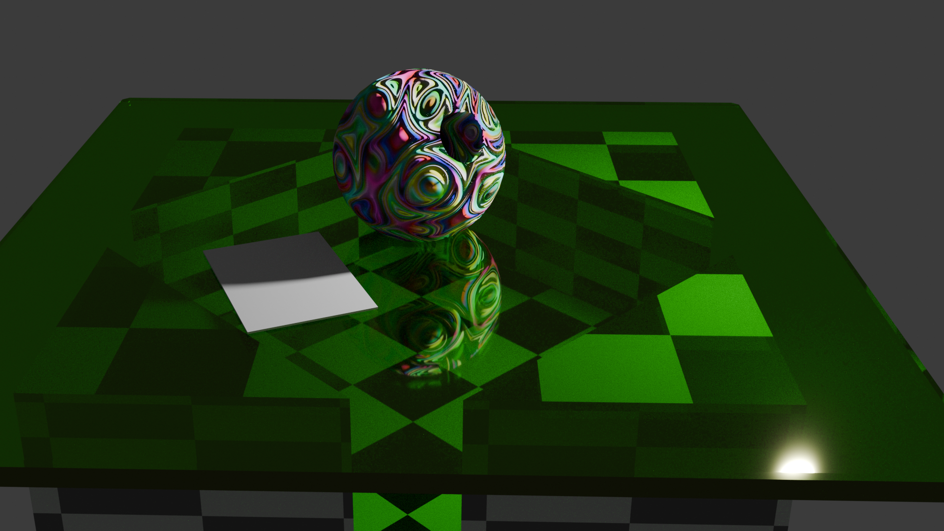 Свободно распространяемая программа для создания реалистичных трёхмерных анимированных сцен Blender 3D в настоящее время является одной из лучших программ для создания реалистичной трёхмерной графики. Под руководством преподавателя создайте простую сцену из нескольких объектов, источника света и камеры. Задайте каждому из объектов сцены свой материал, потренируйтесь в конструировании зеркальных и стеклянных материалов, освойте рендеринг. Пример: